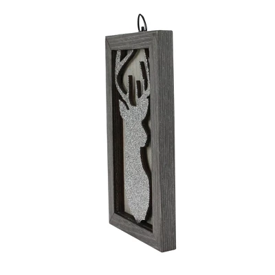 Northlight 10.25″ Silver Glittered Buck Silhouette Box Framed Christmas Wall Hanging