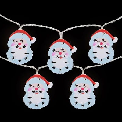 These battery-operated Santa Claus fairy lights will make your holiday decorating a breeze. Battery operated means you can place them anywhere. Durable and highly flexible, these lights can be displayed quickly and easily for all of your holiday decorating needs. Product Features:Color: warm white bulbs / silver copper wireRed, white and blue Santa Claus facesNumber of bulbs on string: 10Bulb size: micro fairySpacing between each bulb: 4″Lighted length: 3.25’Total length: 4’11” lead cordAdditional Product Features:LED lights 90% less energyBulb stay cool to the touchUL certified and approved for indoor use onlyRequires 2 ‘AA’ batteries – not includedConvenient on/off switch on battery packNon-replaceable bulbsCannot connect multiple sets togetherMaterial(s): plastic/metal/wire