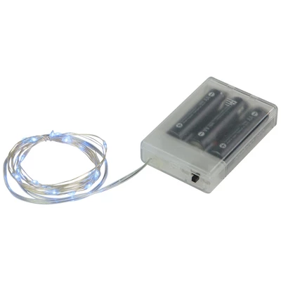 These blue micro fairy lights radiate a bright, sparkly hue, perfect for complementing any color scheme. The ultra-slim pliable wire makes these lights incredibly versatile. They can easily be stretched and shaped to accommodate your decorating needs. Product features:Color: blue bulbs / silver-plated copper wireNumber of bulbs on string: 20Bulb size: micro fairySpacing between bulbs: 4″Lighted length: 6’Total length: 7’12” lead cordAdditional product features:LED lights use 90% less energyBulbs stay cool to the touchNon-replaceable bulbsIf one bulb burns out, the rest will stay litFor indoor use onlyCannot connect multiple sets togetherRequires 3 ‘AA’ size batteries – not includedOn/off switch on battery pack