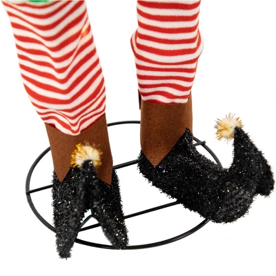 This jolly elf is the perfect addition to your holiday display. No need to worry about messy cords or finding a nearby power source – this enchanting yard decoration operates on batteries, allowing you to easily place it anywhere in your yard or garden. The energy-efficient LED lights ensure long-lasting brightness, so your elf will shine brightly all season long.Product Features:Battery operated LED lighted Elf holiday yard decorationPre-lit with a total of 35 lights Elf: 25 warm white lightsLight String: 10 multi-color lightsBulb size: miniBulb type: LEDBattery operatedAdditional Product Features: LED lights use 90% less energy Lights stay cool to the touch Ground stakes includedLight string and Elf each require 3 AA batteries – not includedEasy assembly required Dimensions: 35.25″H x 22.75″W x 8.25″DMaterial(s): metal/plastic/wire/fabric