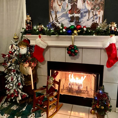 This Santa Claus is full of country holiday charm and is all decked out and ready for the holiday season. Santa is dressed in a red and green plaid shirt, brown vest, pants and matching faux fur boots. Santa holds an ax and a freshly cut flocked artificial holiday tree ready to decorate for the holiday. Perfect to add to any room in your home that needs a little bit of holiday cheer.Product Features:Woodland Santa Claus with tree holiday figureSanta is holding an ax in one hand and a flocked alpine tree in the other Carrying a burlap sack filled with green pine accentuated with red berries and pine cones Recommended for indoor use onlyThis is a display figure, it is not intended to be used as a toyDimensions: 4’H x 20″W x 12″DMaterial(s): fabric/plastic/faux fur/cotton/burlap/wood