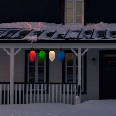 Add a retro touch to your outdoor holiday display with these blow mold-constructed light bulbs. The blow mold construction lends to that nostalgic feel while adding a pop of color and a warm glow to your holiday decor. Designed with green, white, red, and blue light covers, you can let the festivities begin. It is just perfect for outdoor decorating in your yard, porch, and patio.Product Features:Set of 4 C7 style outdoor lighted decorationsRetro style blow mold constructionEach decoration is lighted with 1 clear replaceable C7 glass bulbBulb type: incandescentLarge C7 covers come in red, green, white and blue huesPlastic gold hook on each cap for hanging60″ white lead cord120 volts, 60 hertz, 0.12 amps, 14 wattsContains 1 plug – can not connect other items UL approved and certified for indoor or outdoor useDimensions: 20″ high x 10″ diameterMaterial(s): plastic/glass bulbs/wire